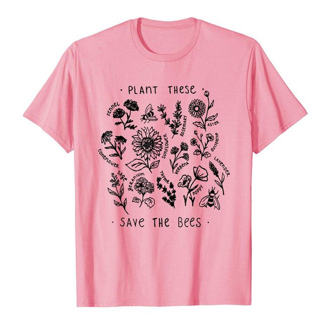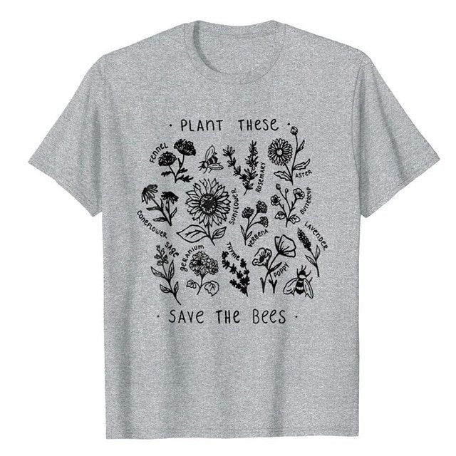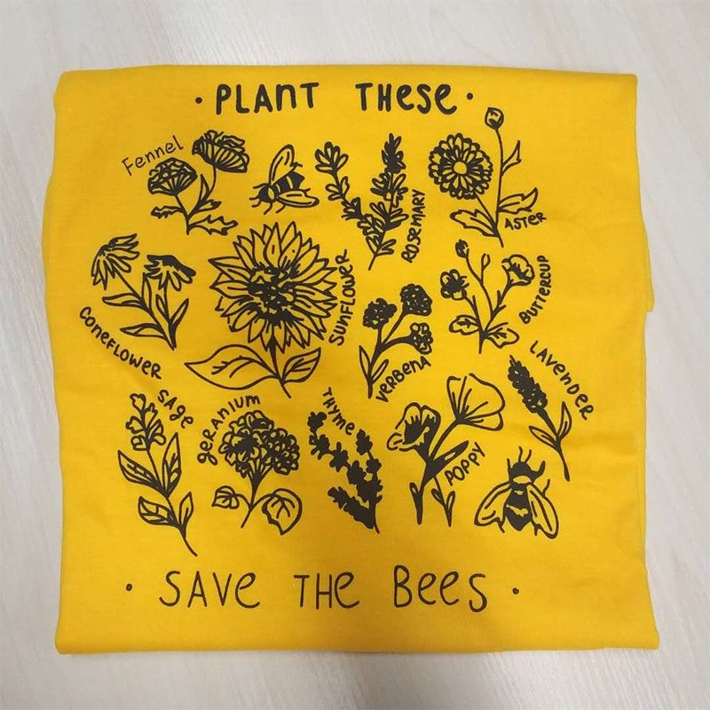 Plant These Harajuku Tshirt Women Causal Save The Bees T-shirt Cotton Wildflower Graphic Tees Woman Unisex Clothes